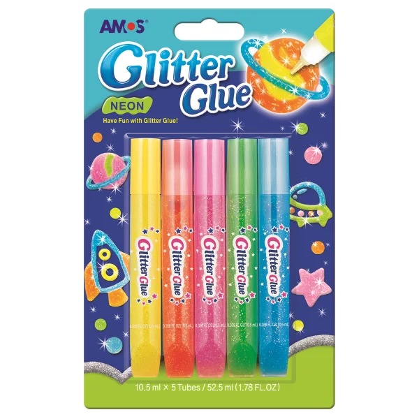 Add a bright and dazzling finish to every project with the Amos Neon Glitter Glue 5-Pack – the perfect way to make crafts stand out.