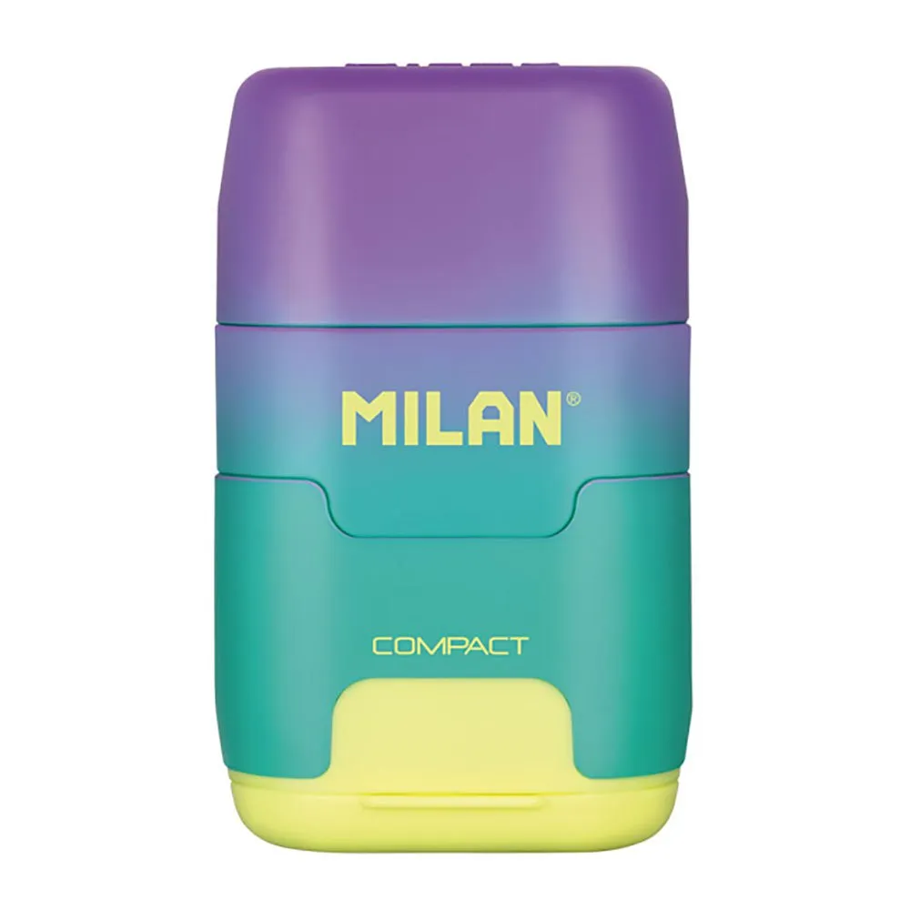 The Milan Sunset Compact Sharpener and Eraser Purple is a handy two in one stationery essential designed for school, home, and everyday pencil use. Featuring a bright sunset inspired gradient finish, this compact accessory combines a pencil sharpener and eraser in one easy to carry design.