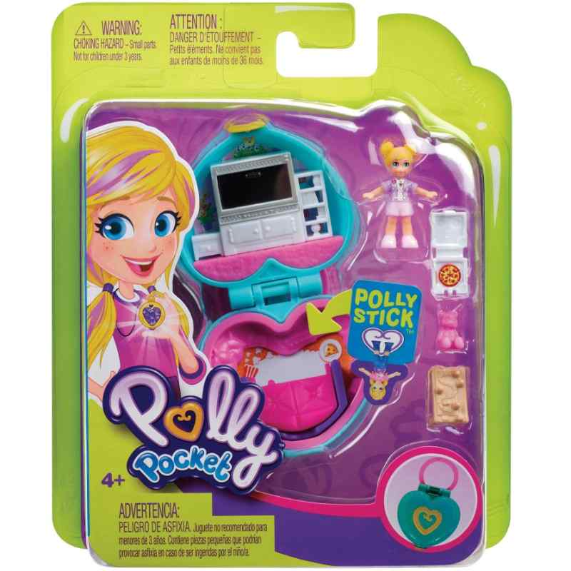 With games, pizza, a huge TV for movies and a pull-out sofa bed, Polly is all set to host the best Slumber Party ever. You can easily fit all the accessories inside the Livingroom Playset Compact and then use the ring to clip it to a backpack or purse so you can carry Polly everywhere with you.