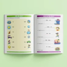 Children begin by learning the sounds used in words, then progress to categorising words and understanding story sequence. As the workbook continues, activities expand to include comprehension, rhyming words, perceptual skills and vocabulary development, supporting both reading and spelling confidence.