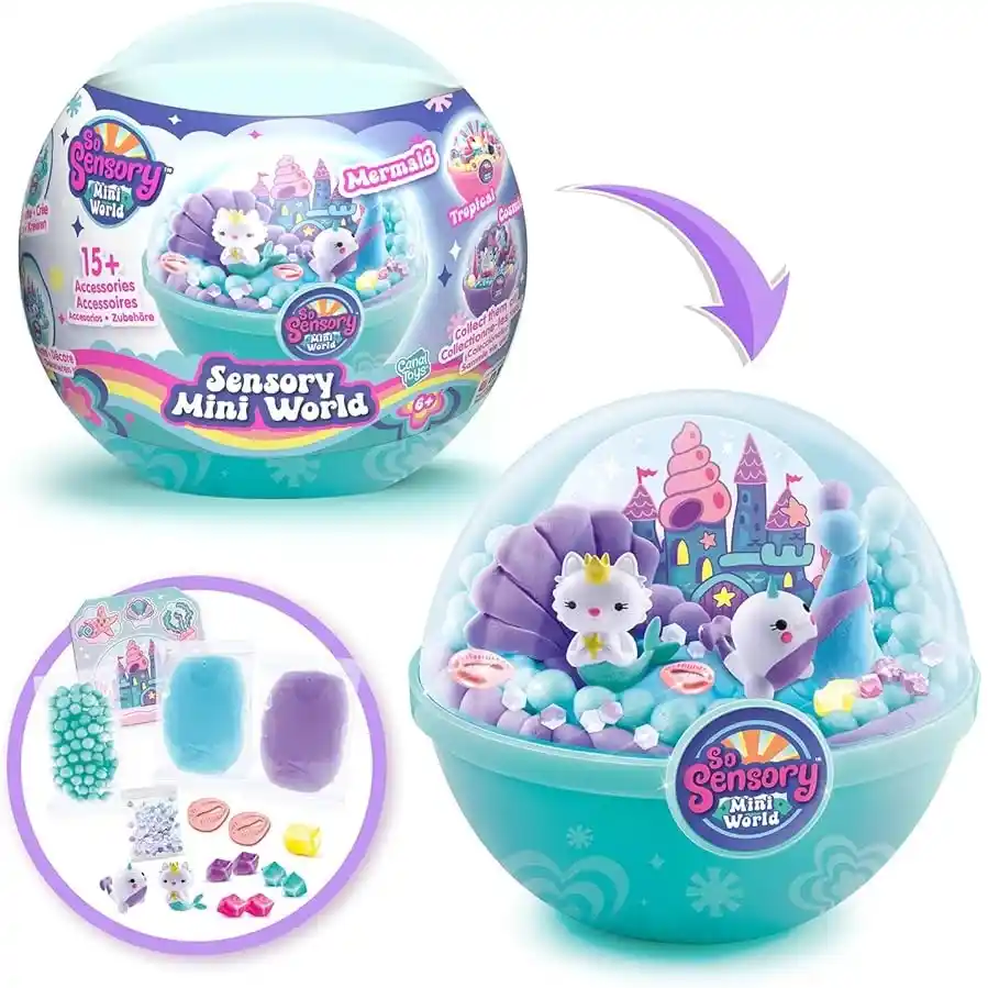 Make a splash with the So Sensory Mini World – Mermaid! Designed for imaginative kids aged 6 and up, this magical surprise ball invites children to create their own under-the-sea world filled with colour, texture, and sparkle.