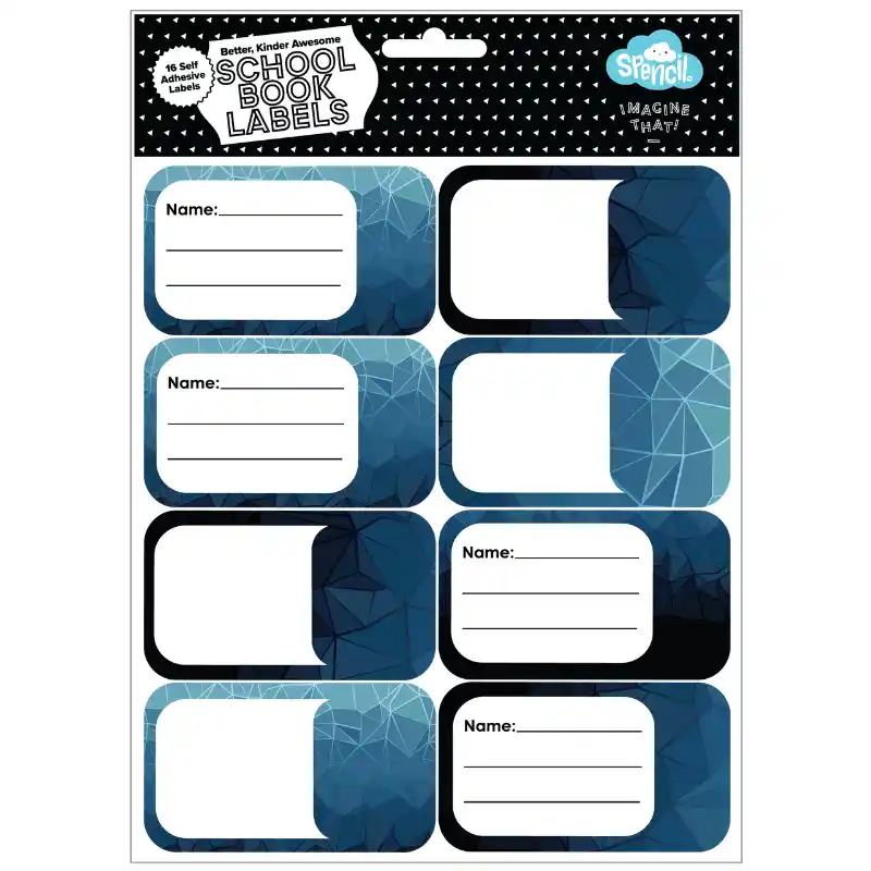 Keep school books easy to identify with the Spencil Book Labels 16 Pack in the Fractal design. Featuring bold, eye-catching patterns, these labels add a modern look while helping prevent mix-ups at school.
