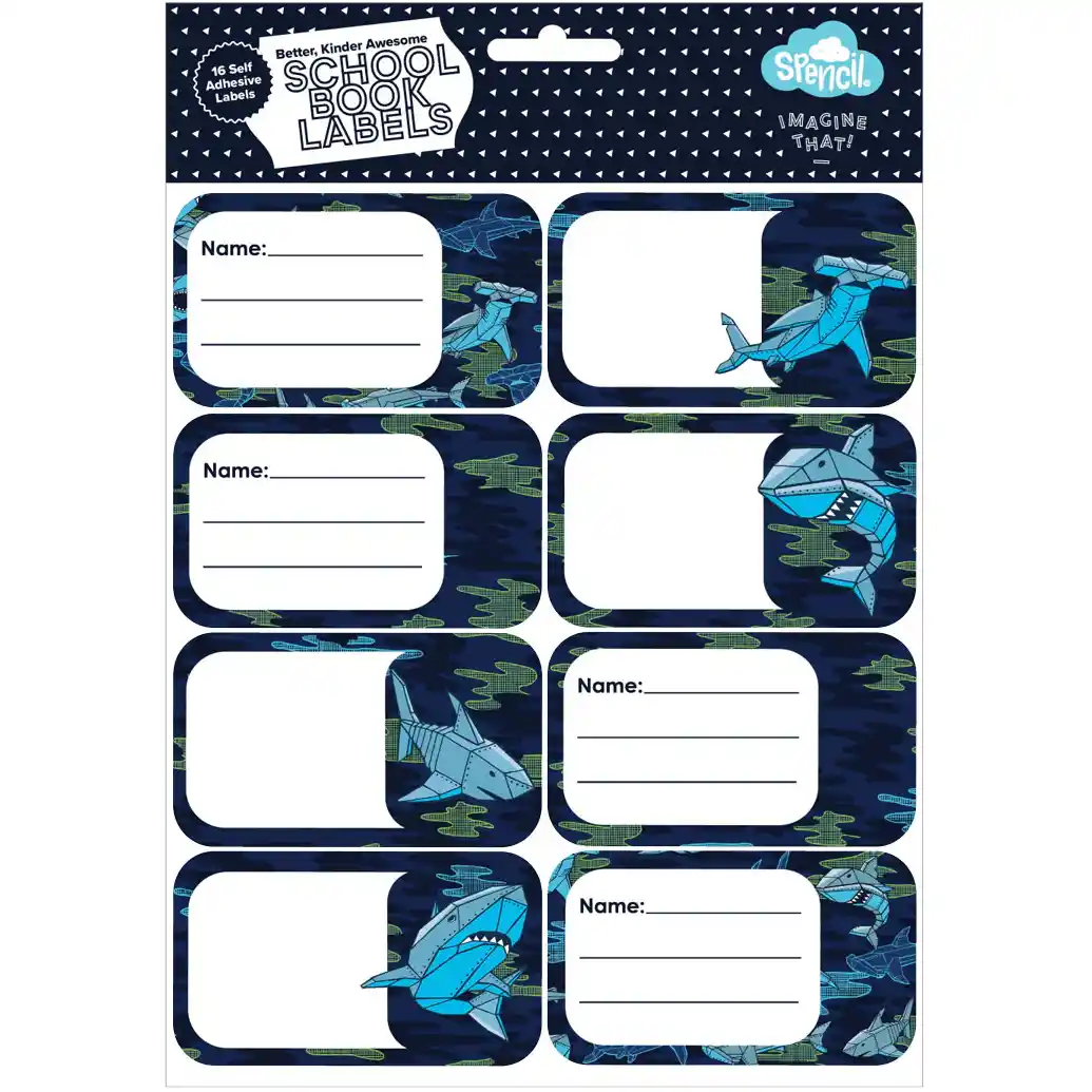 Keep school books easy to identify with the Spencil Book Labels 16 Pack in the Robo Shark design. Featuring bold, action-packed artwork, these labels add a fun edge while helping prevent mix-ups at school.