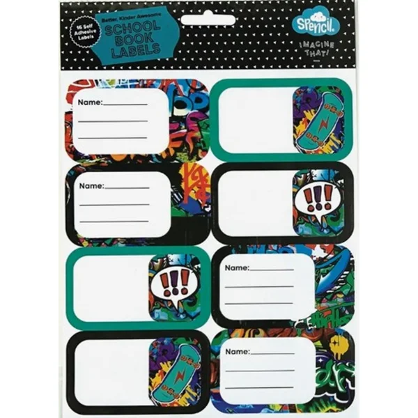Keep school books easy to identify with the Spencil Book Labels 16 Pack in the Street Art design. Featuring bold, graffiti-inspired artwork, these labels add a cool, creative look while helping prevent mix-ups at school.