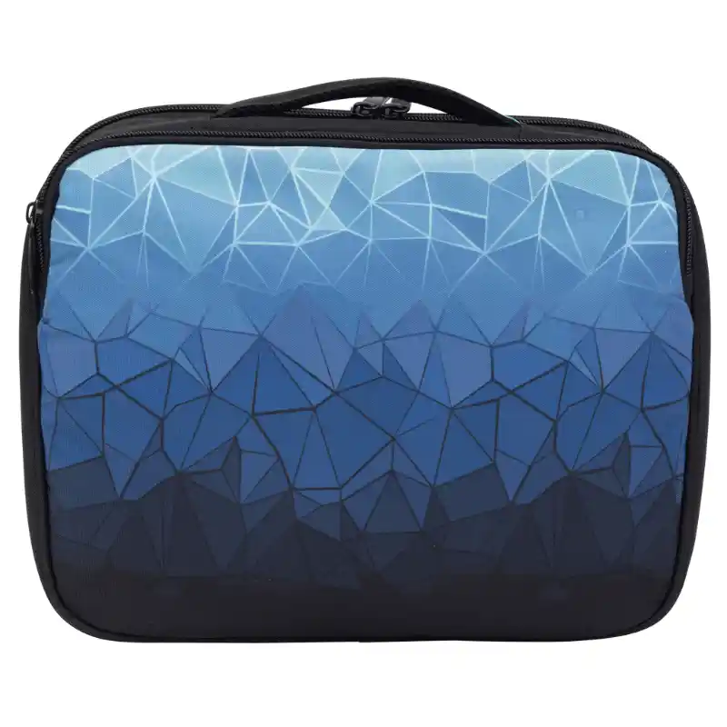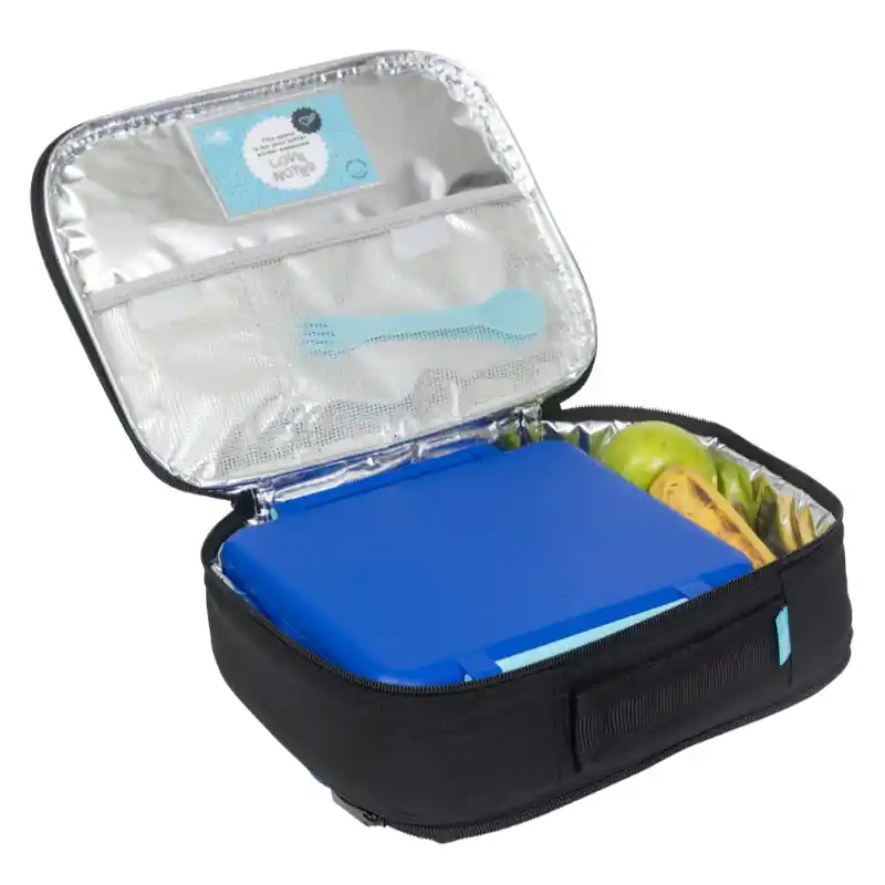 An aluminium food safe insulated lining helps maintain temperature, while multiple storage pockets make packing lunches simple. The front zip pocket is ideal for extra snacks, the inside pocket is perfect for notes, and a mesh pocket inside the lid provides additional organised storage. A sturdy padded handle and dual zip main compartment make it easy for kids to open and carry.